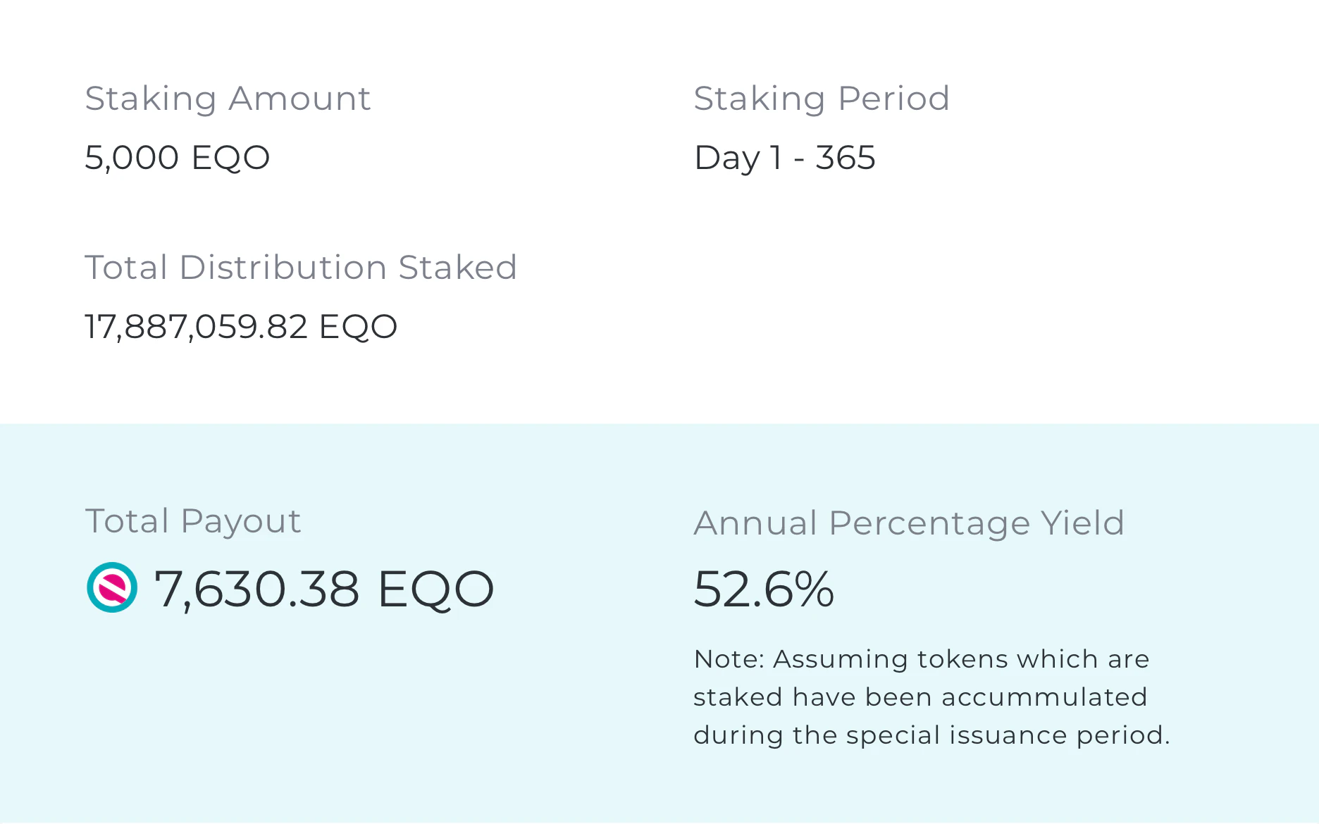 EQO token holders that stake their tokens on the EQUOS platform will be eligible to receive more EQO tokens every day in the daily Reward Batch. Tokens can only be earned through trading or staking existing EQO tokens held on the EQUOS platform.